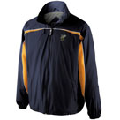 Set-on collar and cuffs are a contrasting color. Double-needle stitched bottom hem. Athletic fit. Decoration: Screen-Printed