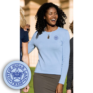 Cardigan or crewneck, dressy or casual, our fine-gauge combed cotton knit is an ideal choice. Luxuriously soft, flattering and far beyond basic. These City of Sugar Land sweaters have a traditional feminine fit to complement every woman, and every body type. Pair them together for a beautiful sweater set.