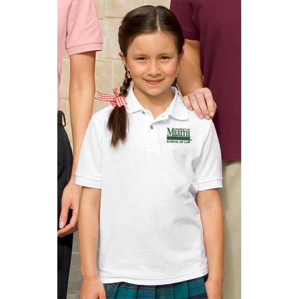 Youth sizes: XS (2-4), S(6-8), M(10-12) 2-button placket; L(14-16), XL(18-20) 3-button placket Decoration: Embroidered