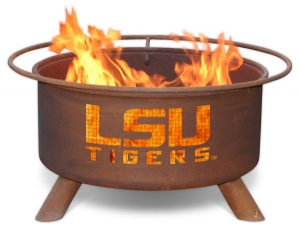 This LSU fire pit is supported by three sturdy legs, welded in place to prevent the pit from wobbling. For safety, the fire pit includes a spark screen, which can be easily removed with the poker (pit hook). Every fire pit comes with this poker and a barbeque grill for easy outdoor grilling. Its portable design allows you to easily take your fire pit from the deck or patio to the beach or to your favorite camping spot. This natural rust patina fire pit comes fully assembled and has a 5- year warranty on the fire pit.