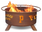 This University of Pittsburgh fire pit is supported by three sturdy legs, welded in place to prevent the pit from wobbling. For safety, the fire pit includes a spark screen, which can be easily removed with the poker (pit hook). Every fire pit comes with this poker and a barbeque grill for easy outdoor grilling. Its portable design allows you to easily take your fire pit from the deck or patio to the beach or to your favorite camping spot. This natural rust patina fire pit comes fully assembled and has a 5- year warranty on the fire pit.