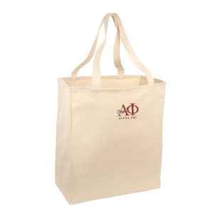 With long 11-in. handles to make carrying a breeze, this roomy Alpha Phi tote is an easy way to say no to paper and plastic grocery bags.