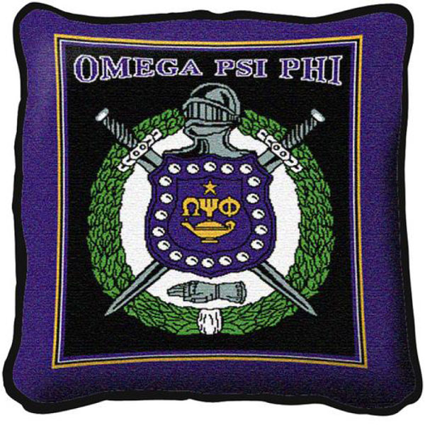 These Omega Psi Phi full color woven pillows come in 17" x 17" size. Each is fully self corded and backed with various backing colors. Some designs are front and back.