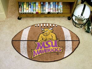 For all those Minnesota State University Mankato football fans out there: football-shaped area rugs by FANMATS. Made in U.S.A. 100% nylon carpet and non-skid Duragon latex backing. Machine washable. Officially licensed. Chromojet painted in true team colors.