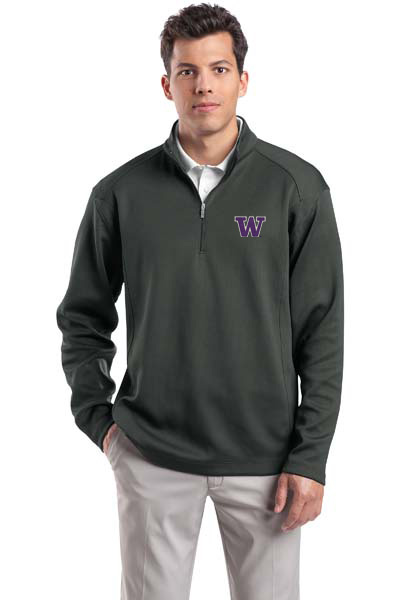 An excellent choice for layering, this new Huskies cover-up has a subtle texture and a soft hand. The design features a zip-through collar, open cuffs and an open hem. The contrast Swoosh design trademark is embroidered on the back of the neck. Made of 9.75-ounce, 61/39 cotton/polyester.This Nike Golf Sport Cover up features: