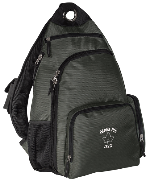 Our new Alpha Phi Sling Pack gives you quick access thanks to its single strap design that moves easily from your back to your chest. The teardrop shape positions weight behind your shoulder for comfortable carrying.