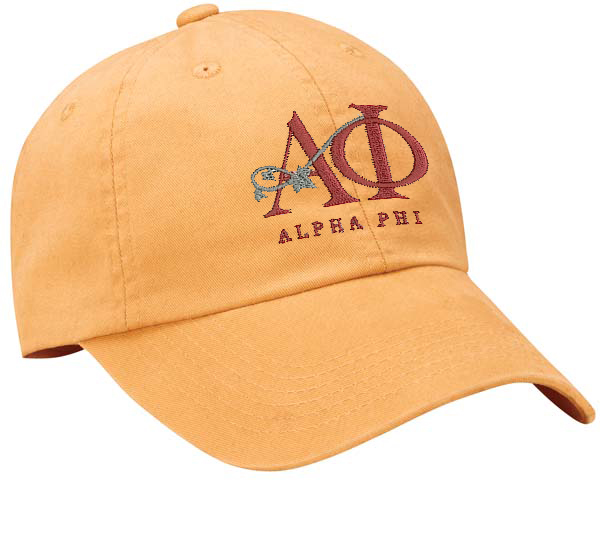 Our popular pigment-dyed, garment washed* Alpha Phi cap has a lived-in look and is slightly brushed for softness and comfort. This ladies version features a smaller circumference and a shorter bill for a more feminine look.