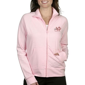 | 6.5 oz., 95% cotton/5% spandex jersey knit cadet jacket. Feminine fit. Self fabric cadet collar, cuffs and waistband. YKK full front zipper. Raglan sleeves. Front pockets. |