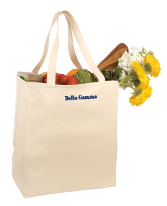 With long 11-in. handles to make carrying a breeze, this roomy Delta Gamma tote is an easy way to bypass paper and plastic grocery bags.