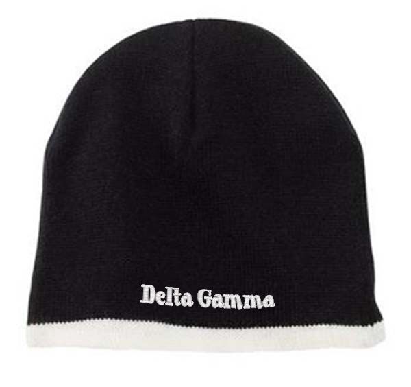 A warm must-have accessory, this Delta Gamma beanie is available in a variety of solid colors or with a contrasting trim.