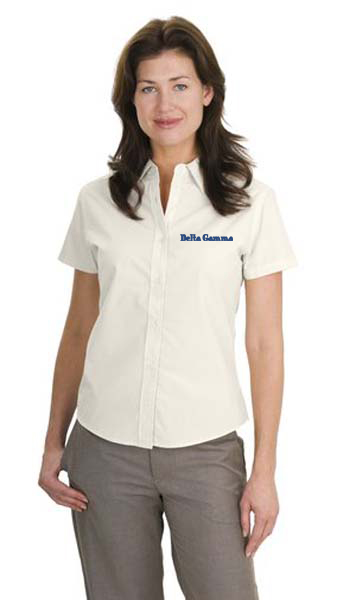 A carefree Delta Gamma workshirt you'll actually enjoy wearing. Dupont Teflon soil resistance protects you from stains. Wrinkle resistant fabric keeps you looking neat. All this-at a tremendous value!