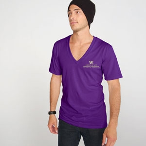 This UW School of Law Unisex Deep V-Neck T Features: 4.2 oz., 100% preshrunk combed ringspun cotton jersey deep v-neck t-shirt. Set-in mitered deep v-neck collar. Double-needle stitched sleeve and bottom hem. |
