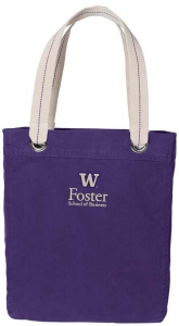 Shopping, commuting or sightseeing, the UW School of Business Allie is your companion. Contrast lining, striped handles and large metal grommets add a touch of whimsy to this casual tote. The open-top design offers easy access to books, papers or camera. An interior zippered pocket keeps keys and small essentials secure.