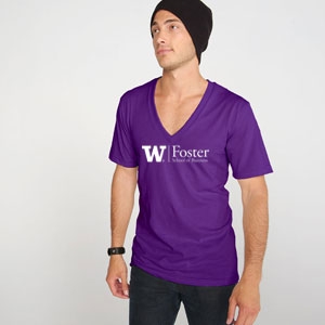 This UW School of Business Unisex Deep V-Neck T Features: 4.2 oz., 100% preshrunk combed ringspun cotton jersey deep v-neck t-shirt. Set-in mitered deep v-neck collar. Double-needle stitched sleeve and bottom hem. |