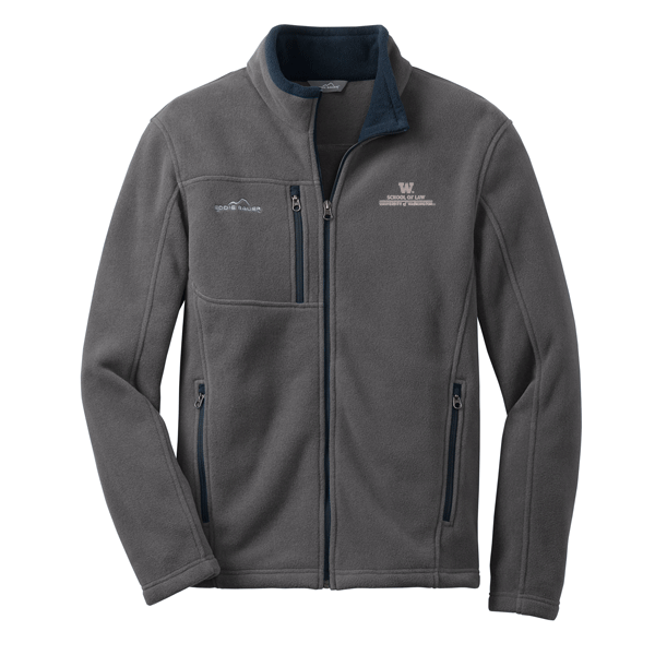 This super soft and warm jacket is as comfortable as it gets for fall hikes and everyday excursions. Contrast rolled top collar, zippered chest pocket, reverse coil contrast zippers, front zippered pockets with tricot lining, open cuffs and an open hem. Contrast Eddie Bauer logo embroidered on right chest. Made of 12-ounce, 100% polyester fleece which incorporates Low Impact Technology for enhanced softness and performance.
